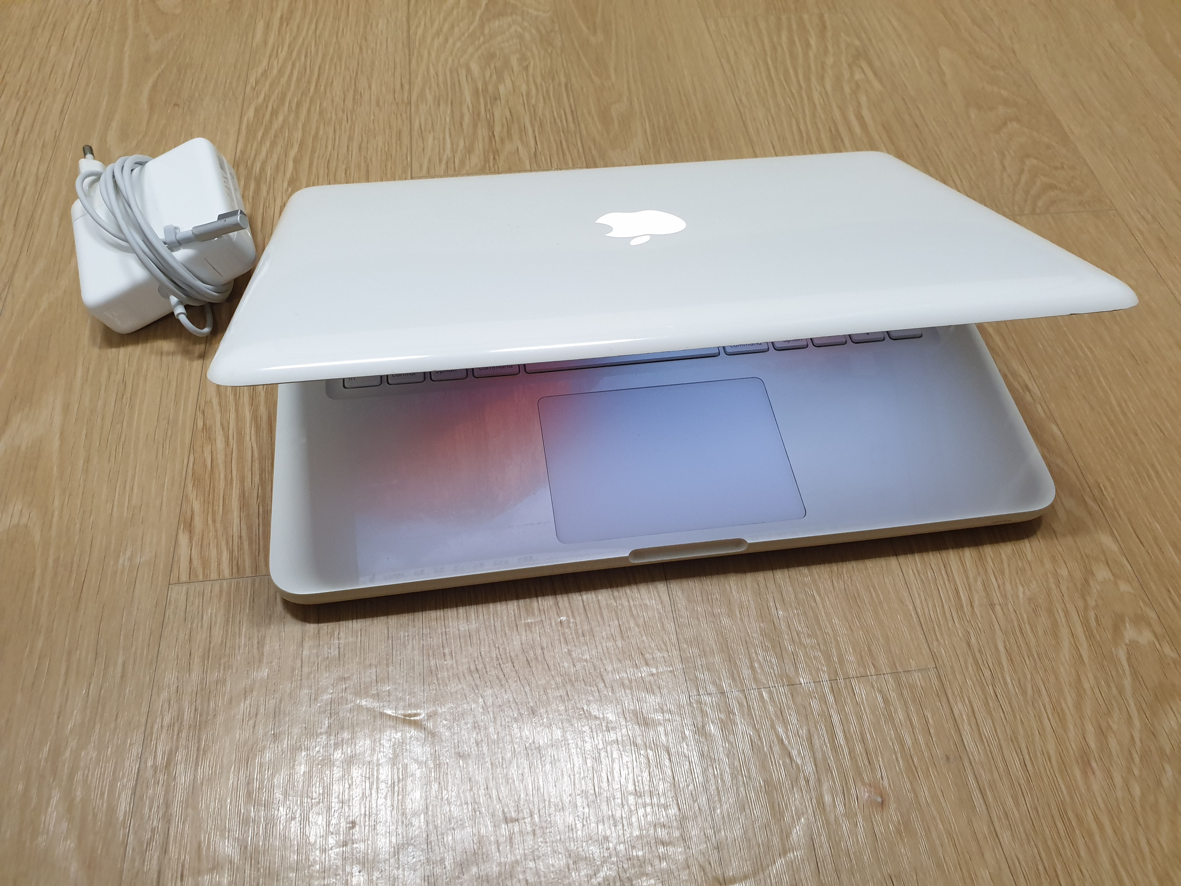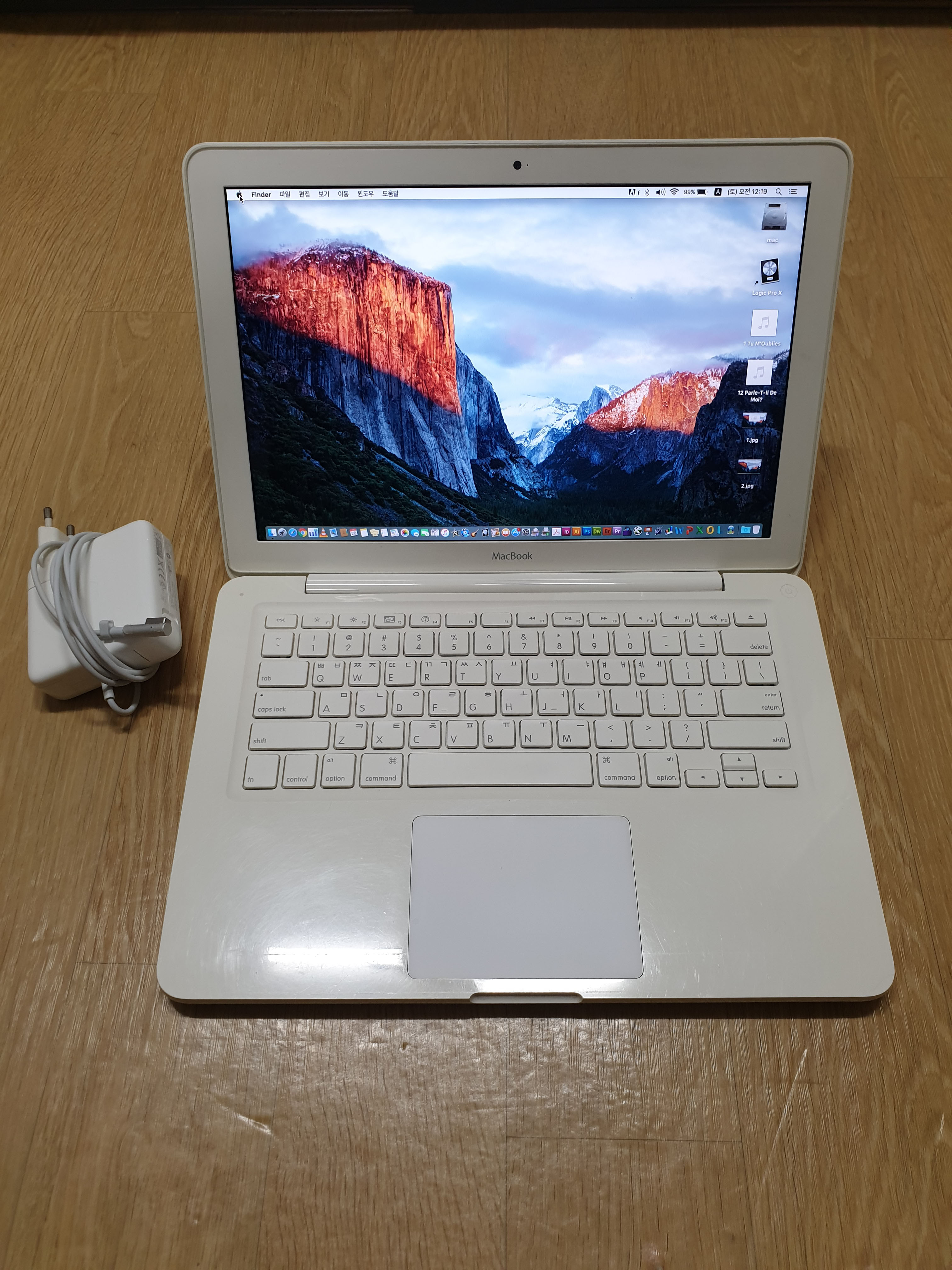 구성품은 배터리 새거 장착된 외관좋은 화이트맥북과 새로 산 충전기입니다