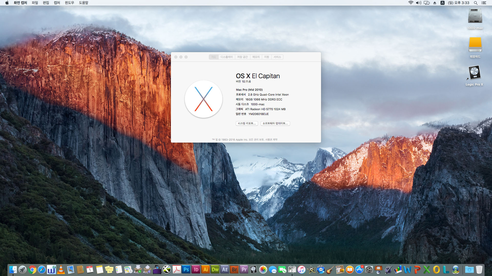 시스템은 엘캐피탄 10.11.6 깔려있습니다